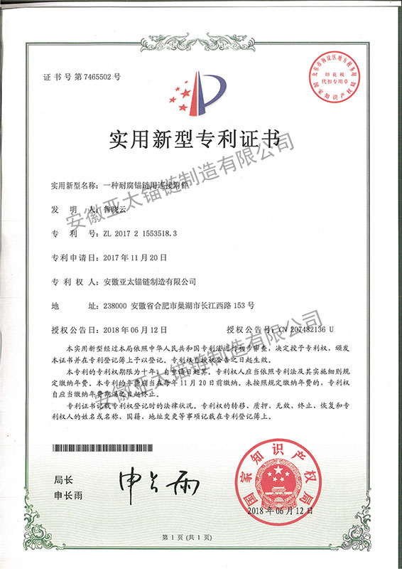 安徽亞太錨鏈制造有限公司是國家高新技術(shù)企業(yè),也是國家GB/T 549-2017《電焊錨鏈》標準的起草和制定單位之一。公司旗下設(shè)有錨鏈分廠、浮標分廠、舾裝件分廠等多個分廠。公司專業(yè)從事φ12.5mm-φ107mm二、三級船用錨鏈、浮標錨鏈、錨鏈附件,錨、船舶曬裝產(chǎn)品、航標、系船浮、船型標、多種規(guī)格海洋監(jiān)測浮標及航標燈等產(chǎn)品的生產(chǎn)、安裝和服務(wù)。目前公司的產(chǎn)品銷往全國各地船廠、碼頭、航標處、航道局、海洋局,并已走上國際市場,如東南亞、中東、歐美等國家。